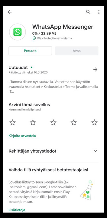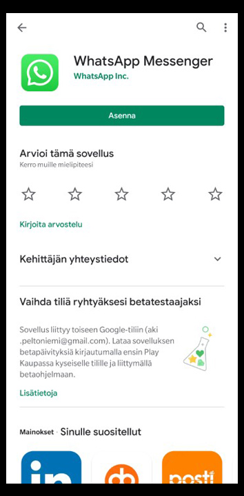 - (Mikäli tässä näkyy avaa ja poista nappulat, on ohjelma jo asennettuna. Tällöin voit siirtä seuraavan osaan ohjetta tästä linkistä: Android ohjeet)