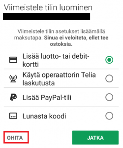 - Napsauta vasemmassa alakulmassa olevaa "ohita" nappulaa (rajattu punaisella).