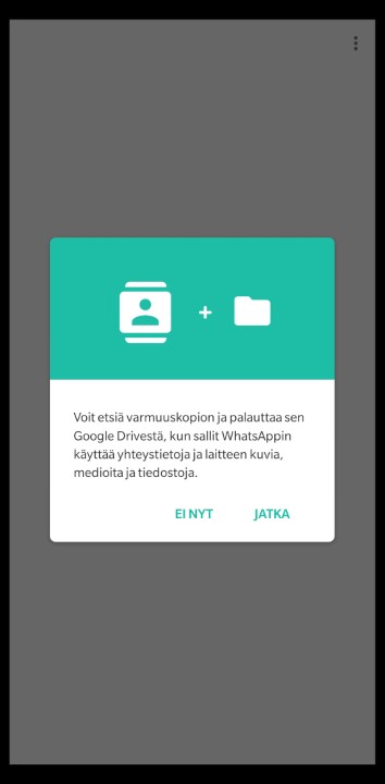 Suosittelen antamaan WhatsAppille oikeudet käyttää yhteystietoja, laitteen kuvia, medioita ja tiedostoja.