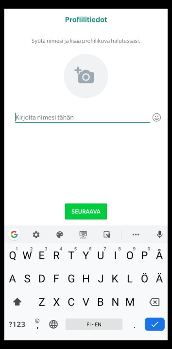 Seuraavaksi WhatsApp kysyy sinulta Profiilin perustiedot