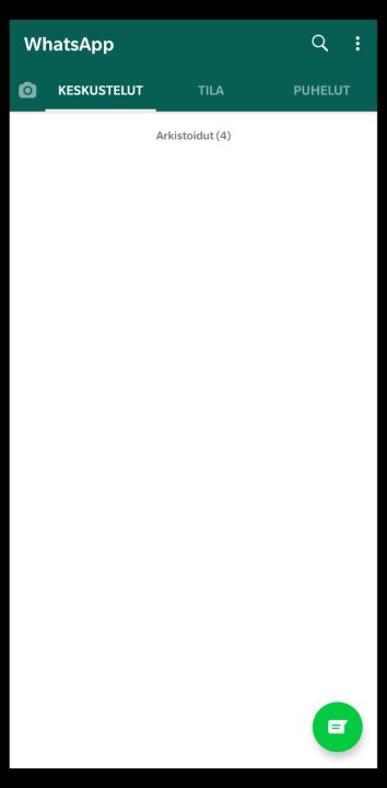Olet nyt ottanut WhatsAppin käyttöön ja perusnäkymä avautuu.